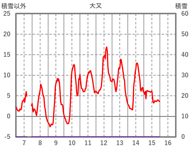 | 日 | 時 | 気温 | 降水 | 風向/風速 | 日照 | 積雪 | 降雪 |