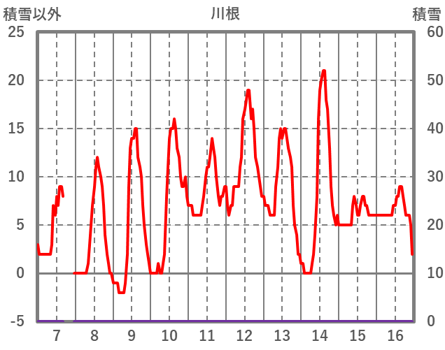 | 日 | 時 | 気温 | 降水 | 風向/風速 | 日照 | 積雪 | 降雪 |