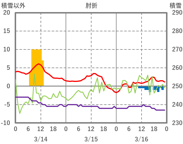 | 日 | 時 | 気温 | 降水 | 風向/風速 | 日照 | 積雪 | 降雪 |