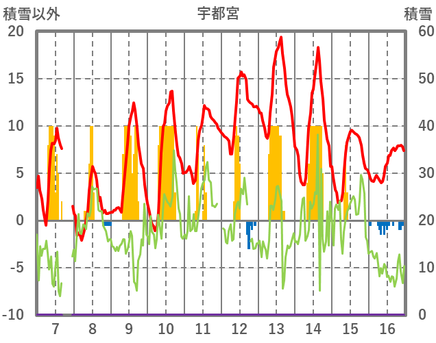| 日 | 時 | 気温 | 降水 | 風向/風速 | 日照 | 積雪 | 降雪 |