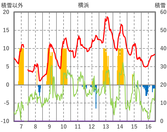 | 日 | 時 | 気温 | 降水 | 風向/風速 | 日照 | 積雪 | 降雪 |