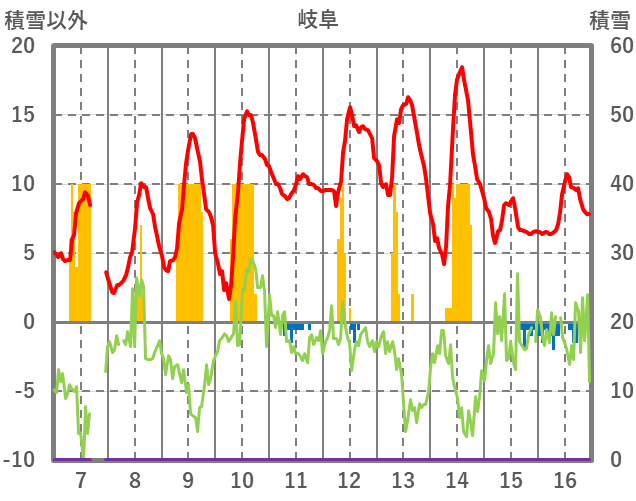 | 日 | 時 | 気温 | 降水 | 風向/風速 | 日照 | 積雪 | 降雪 |