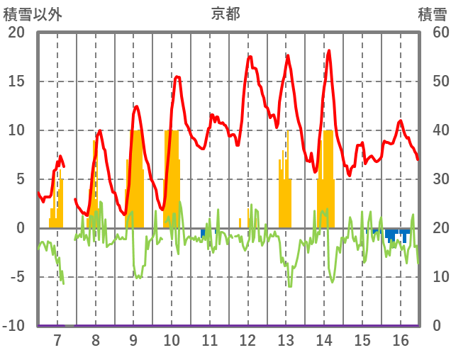 | 日 | 時 | 気温 | 降水 | 風向/風速 | 日照 | 積雪 | 降雪 |