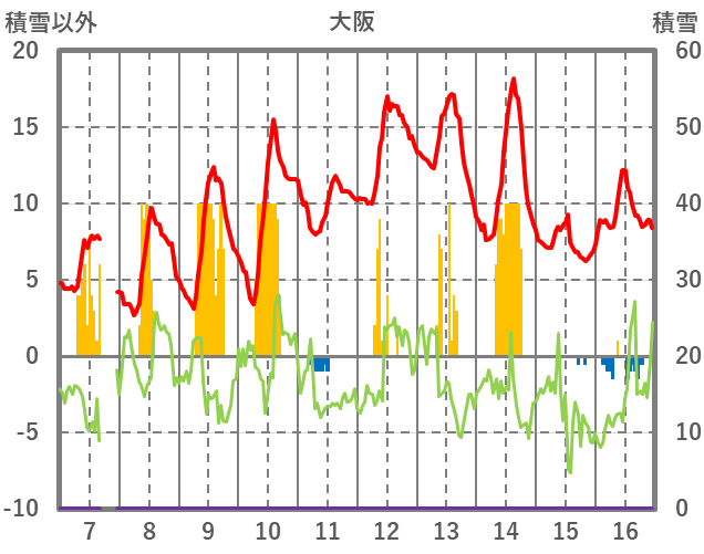 | 日 | 時 | 気温 | 降水 | 風向/風速 | 日照 | 積雪 | 降雪 |