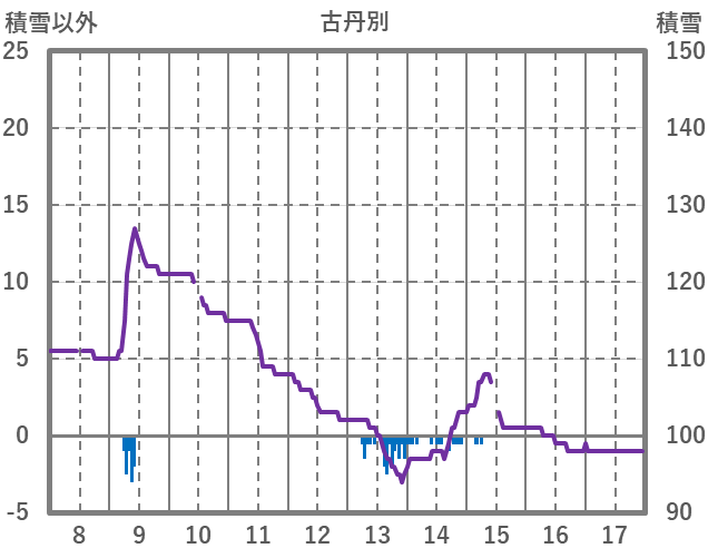 | 日 | 時 | 気温 | 降水 | 風向/風速 | 日照 | 積雪 | 降雪 |