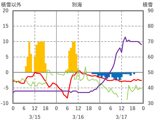 | 日 | 時 | 気温 | 降水 | 風向/風速 | 日照 | 積雪 | 降雪 |