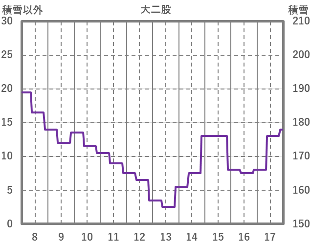 | 日 | 時 | 気温 | 降水 | 風向/風速 | 日照 | 積雪 | 降雪 |