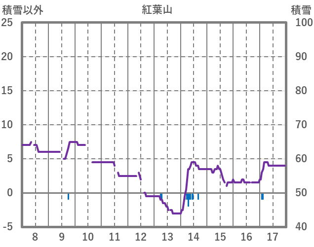 | 日 | 時 | 気温 | 降水 | 風向/風速 | 日照 | 積雪 | 降雪 |
