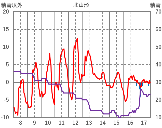 | 日 | 時 | 気温 | 降水 | 風向/風速 | 日照 | 積雪 | 降雪 |