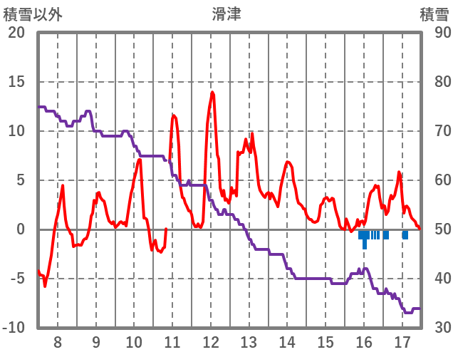 | 日 | 時 | 気温 | 降水 | 風向/風速 | 日照 | 積雪 | 降雪 |