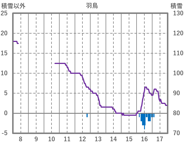 | 日 | 時 | 気温 | 降水 | 風向/風速 | 日照 | 積雪 | 降雪 |