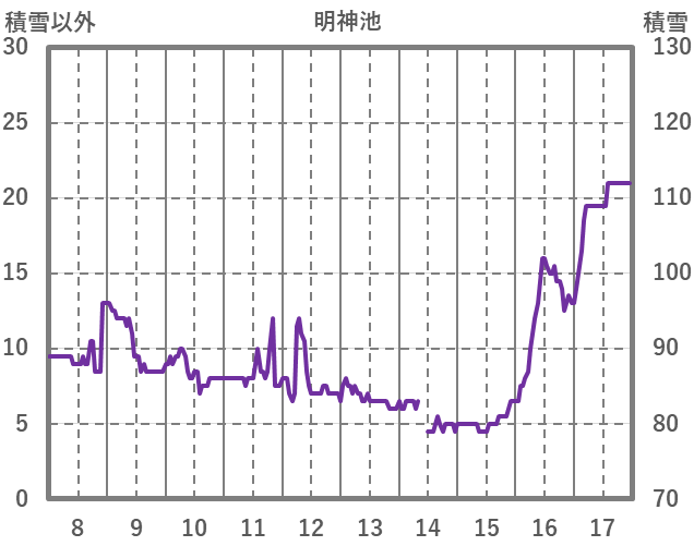| 日 | 時 | 気温 | 降水 | 風向/風速 | 日照 | 積雪 | 降雪 |