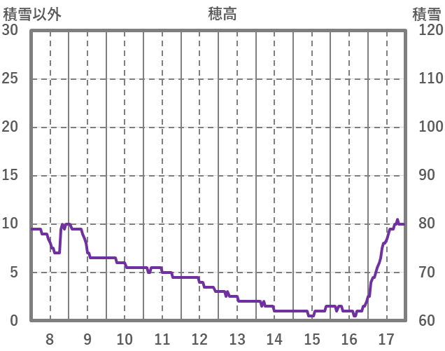 | 日 | 時 | 気温 | 降水 | 風向/風速 | 日照 | 積雪 | 降雪 |