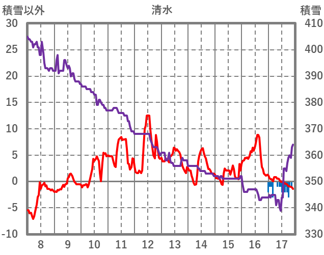 | 日 | 時 | 気温 | 降水 | 風向/風速 | 日照 | 積雪 | 降雪 |