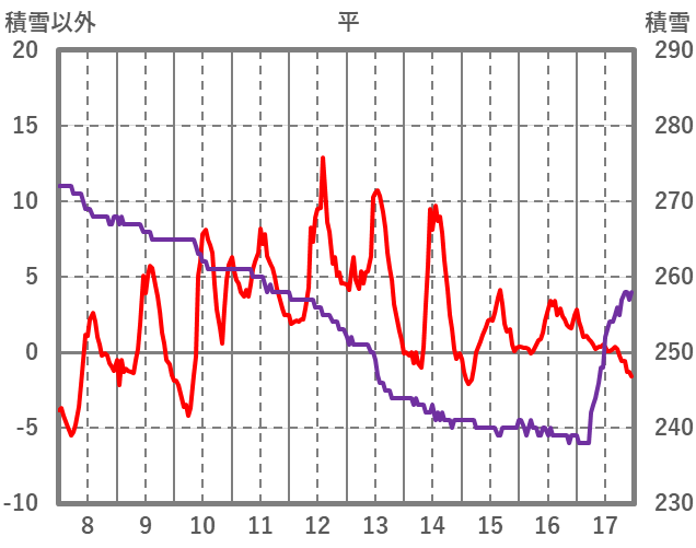 | 日 | 時 | 気温 | 降水 | 風向/風速 | 日照 | 積雪 | 降雪 |