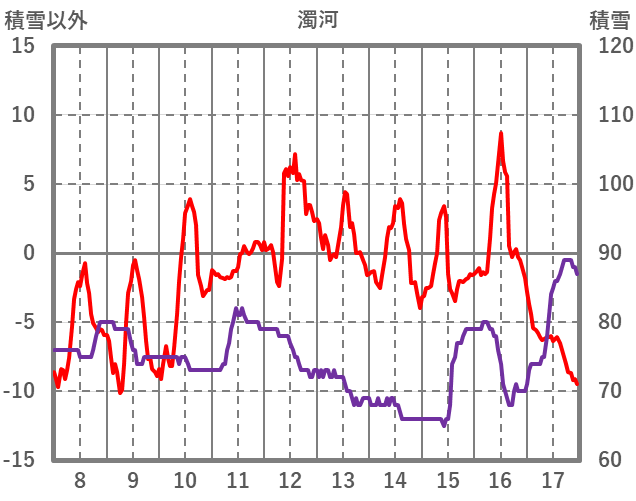 | 日 | 時 | 気温 | 降水 | 風向/風速 | 日照 | 積雪 | 降雪 |