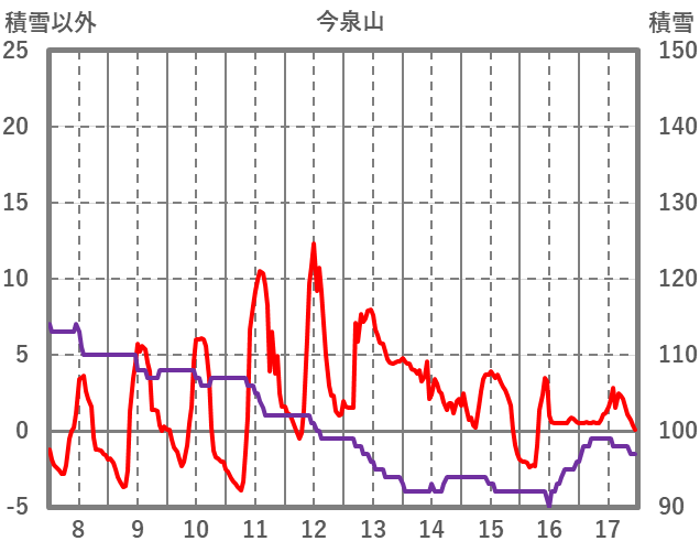 | 日 | 時 | 気温 | 降水 | 風向/風速 | 日照 | 積雪 | 降雪 |