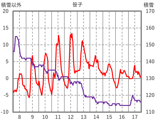 | 日 | 時 | 気温 | 降水 | 風向/風速 | 日照 | 積雪 | 降雪 |