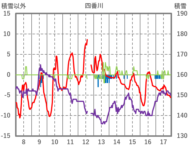 | 日 | 時 | 気温 | 降水 | 風向/風速 | 日照 | 積雪 | 降雪 |