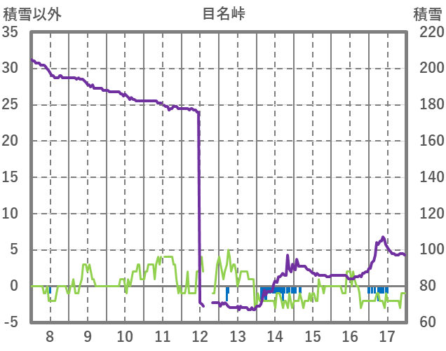 | 日 | 時 | 気温 | 降水 | 風向/風速 | 日照 | 積雪 | 降雪 |