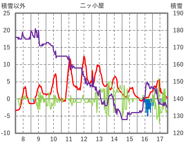 | 日 | 時 | 気温 | 降水 | 風向/風速 | 日照 | 積雪 | 降雪 |