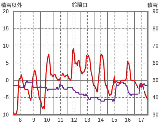 | 日 | 時 | 気温 | 降水 | 風向/風速 | 日照 | 積雪 | 降雪 |