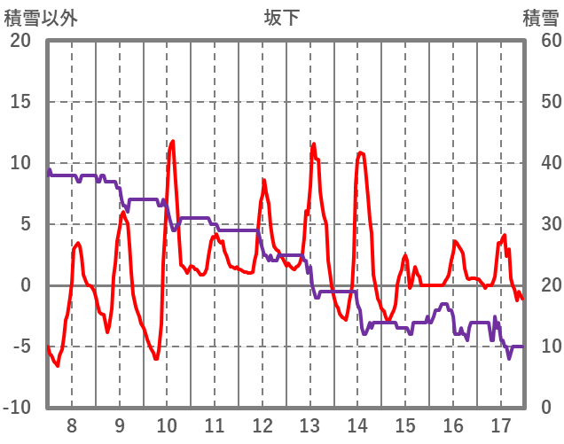 | 日 | 時 | 気温 | 降水 | 風向/風速 | 日照 | 積雪 | 降雪 |