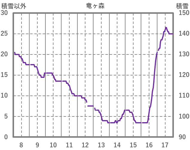 | 日 | 時 | 気温 | 降水 | 風向/風速 | 日照 | 積雪 | 降雪 |