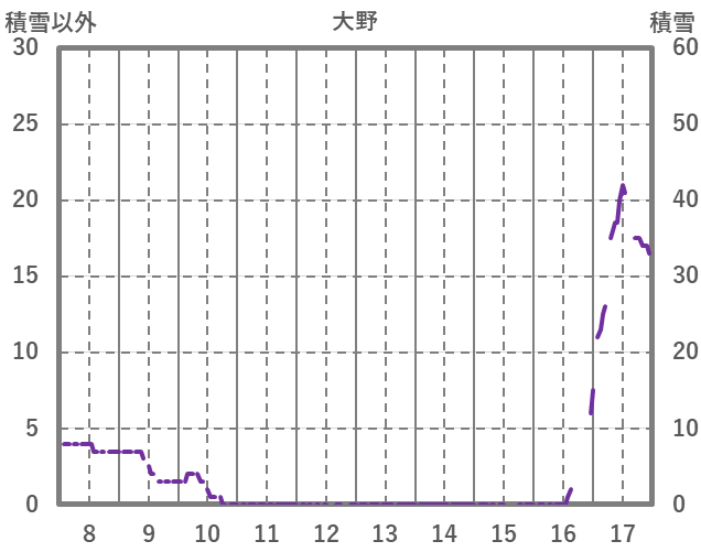 | 日 | 時 | 気温 | 降水 | 風向/風速 | 日照 | 積雪 | 降雪 |