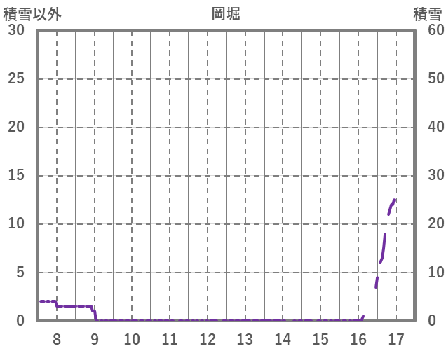 | 日 | 時 | 気温 | 降水 | 風向/風速 | 日照 | 積雪 | 降雪 |