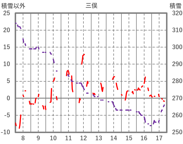 | 日 | 時 | 気温 | 降水 | 風向/風速 | 日照 | 積雪 | 降雪 |