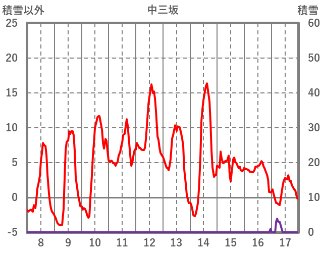 | 日 | 時 | 気温 | 降水 | 風向/風速 | 日照 | 積雪 | 降雪 |
