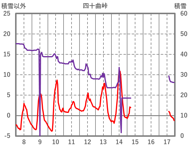 | 日 | 時 | 気温 | 降水 | 風向/風速 | 日照 | 積雪 | 降雪 |