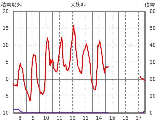| 日 | 時 | 気温 | 降水 | 風向/風速 | 日照 | 積雪 | 降雪 |