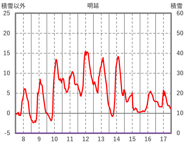 | 日 | 時 | 気温 | 降水 | 風向/風速 | 日照 | 積雪 | 降雪 |