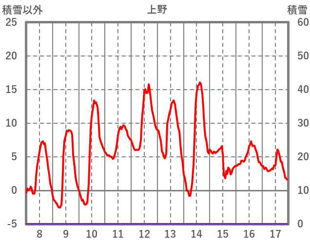 | 日 | 時 | 気温 | 降水 | 風向/風速 | 日照 | 積雪 | 降雪 |