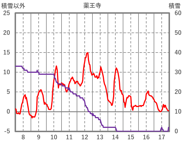 | 日 | 時 | 気温 | 降水 | 風向/風速 | 日照 | 積雪 | 降雪 |