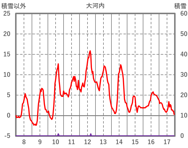 | 日 | 時 | 気温 | 降水 | 風向/風速 | 日照 | 積雪 | 降雪 |