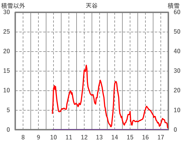| 日 | 時 | 気温 | 降水 | 風向/風速 | 日照 | 積雪 | 降雪 |