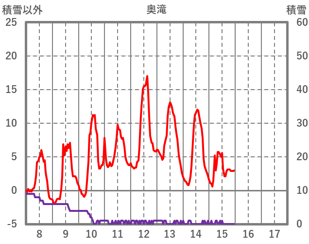 | 日 | 時 | 気温 | 降水 | 風向/風速 | 日照 | 積雪 | 降雪 |