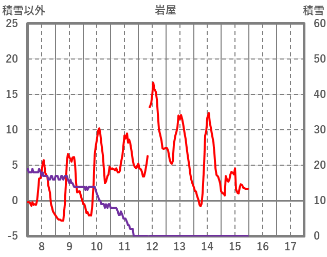 | 日 | 時 | 気温 | 降水 | 風向/風速 | 日照 | 積雪 | 降雪 |