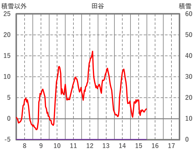 | 日 | 時 | 気温 | 降水 | 風向/風速 | 日照 | 積雪 | 降雪 |