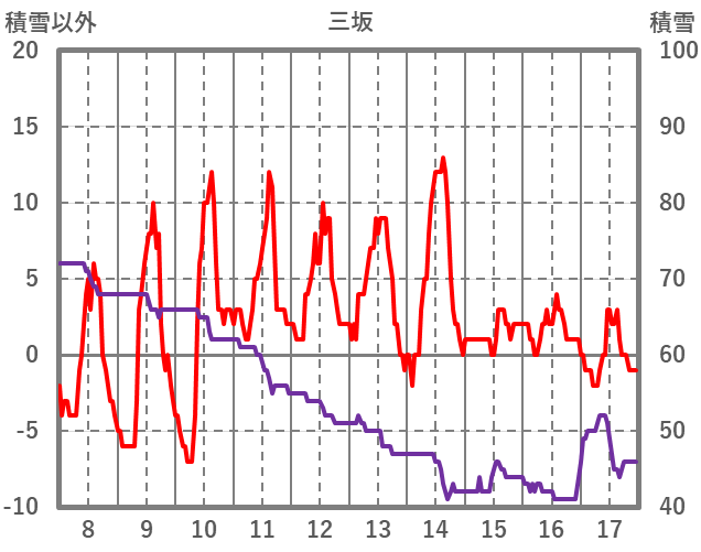 | 日 | 時 | 気温 | 降水 | 風向/風速 | 日照 | 積雪 | 降雪 |