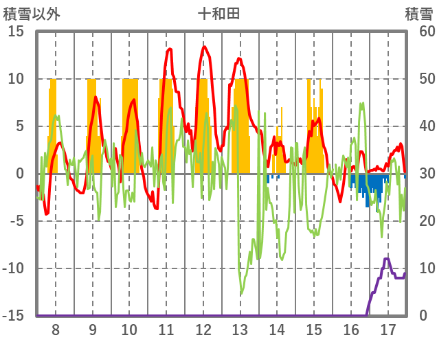 | 日 | 時 | 気温 | 降水 | 風向/風速 | 日照 | 積雪 | 降雪 |