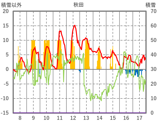 | 日 | 時 | 気温 | 降水 | 風向/風速 | 日照 | 積雪 | 降雪 |