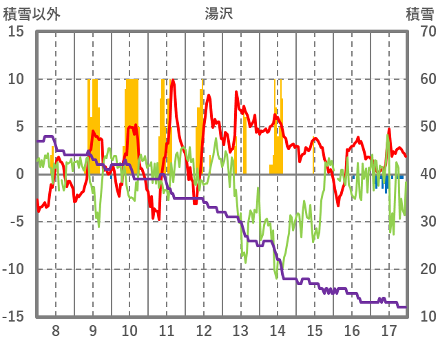 | 日 | 時 | 気温 | 降水 | 風向/風速 | 日照 | 積雪 | 降雪 |