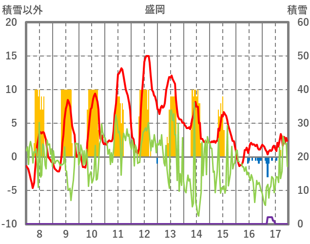 | 日 | 時 | 気温 | 降水 | 風向/風速 | 日照 | 積雪 | 降雪 |