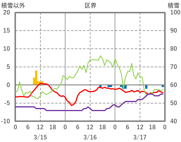 | 日 | 時 | 気温 | 降水 | 風向/風速 | 日照 | 積雪 | 降雪 |