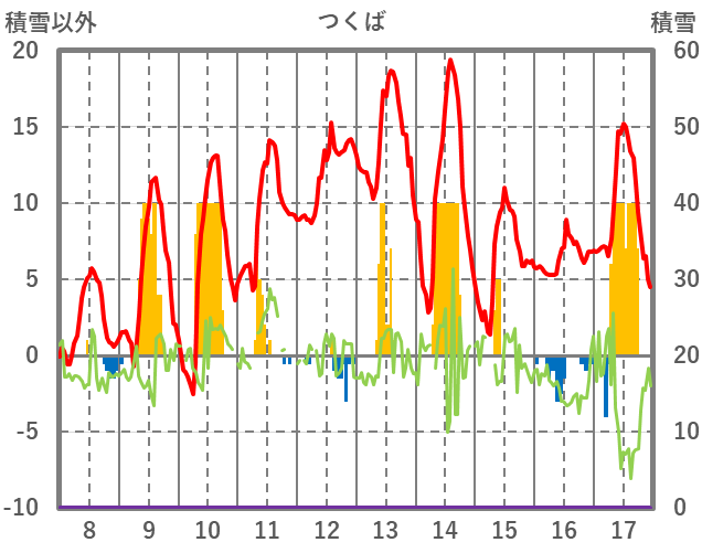 | 日 | 時 | 気温 | 降水 | 風向/風速 | 日照 | 積雪 | 降雪 |
