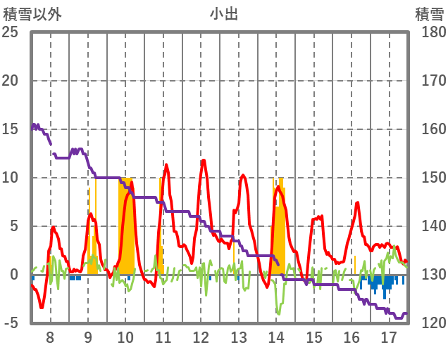 | 日 | 時 | 気温 | 降水 | 風向/風速 | 日照 | 積雪 | 降雪 |